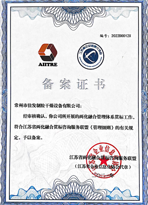 兩化融合備案證書(shū)